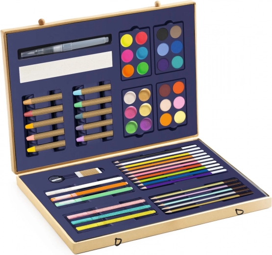 Valiza artistică Strălucitoare de la Djeco oferă copiilor posibilitatea de a-și explora creativitatea și de a crea opere de artă strălucitoare. Permite micilor artiști să se exprime folosind o gamă largă de unelte artistice.