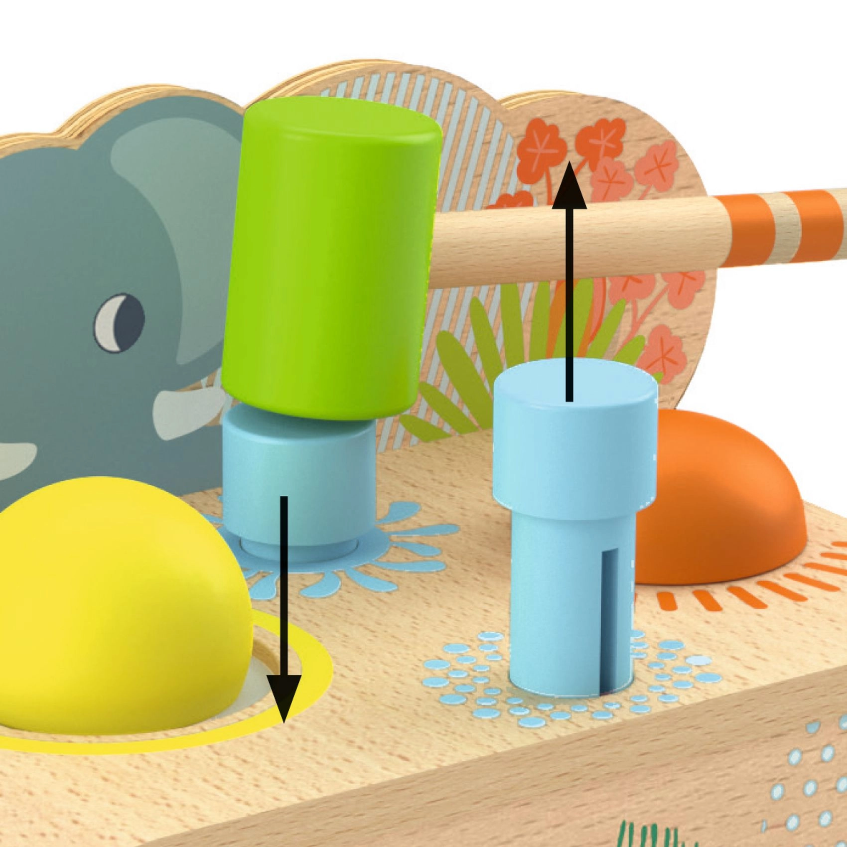 Ciocan de lemn Multi Tap de la marca DJECO este jucăria ideală pentru dezvoltarea motricității și coordonării mâinilor copiilor. Cu această jucărie creativă și colorată, copiii se vor bucura de ore de distracție și descoperire.