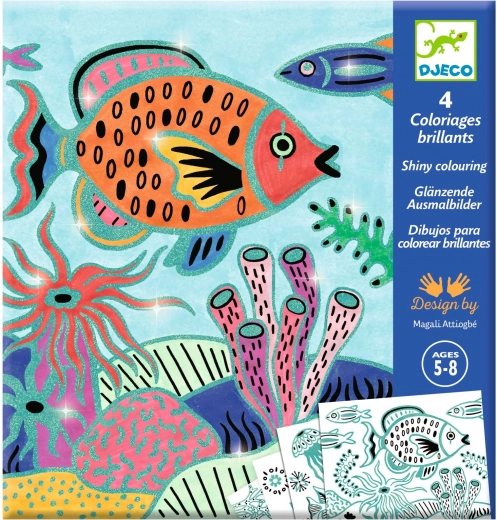 Descoperiți lumea sub mare cu aceste desene uimitoare cu sclipici de la marca Djeco. Fiecare foaie este pregătită pentru a fi acoperită cu sclipici strălucitor, creând un efect captivant.