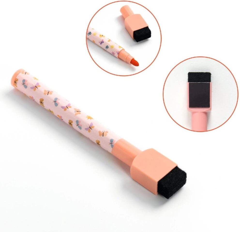 Include un marker uscat ștergător cu capac magnetic, pe care îl puteți prinde mereu direct de tablă. Suprafața metalică este potrivită pentru magneți și pentru markere de tip dry-erase. O alegere excelentă pentru copiii de la 5 ani, pentru dezvoltarea creativității și a motricității fine.