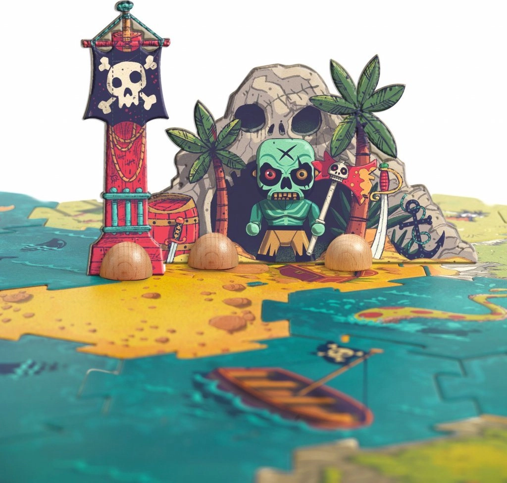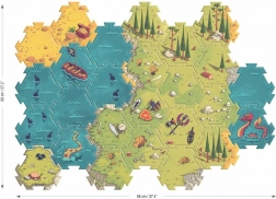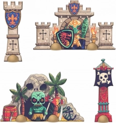 Acest set original combină bucuria puzzle-ului cu jocul creativ. 26 de piese hexagonale mari permit asamblarea unei scene ample, în timp ce 4 decoruri verticale pe postamente din lemn oferă întregii bătălii un efect tridimensional. Piesele sunt realizate din carton foarte rezistent cu certificare FSC®, astfel încât rezistă la joacă frecventă.
