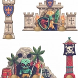 - 26 piese hexagonale duble-față, 4 decoruri verticale mari pe postamente din lemn
