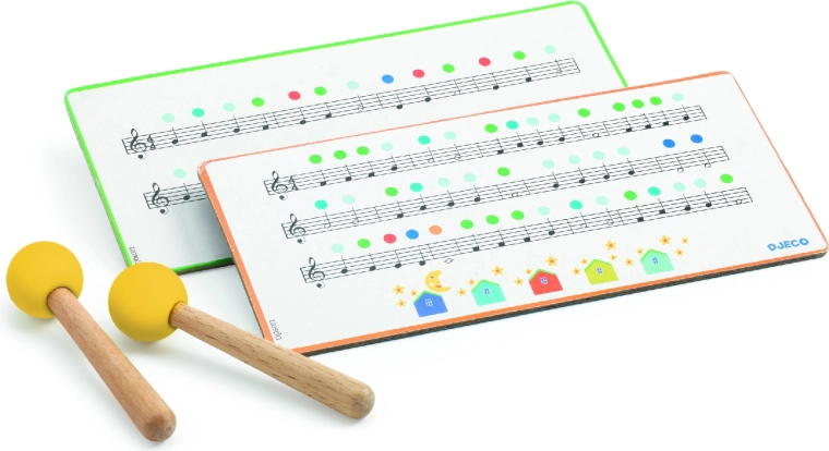 Lamelele numerotate și bețele incluse le permit copiilor să cânte imediat melodii plăcute, fără experiență anterioară.