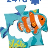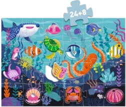 Descoperă puzzle-ul Djeco distractiv și educativ pentru micii exploratori! Asamblează imaginea mare a mării din 24 de piese și apoi completează cu 8 piese decupate în formă de animale marine, plasate în locurile corecte. Susține motricitatea fină, gândirea logică și recunoașterea animalelor. Ideal pentru copii de la 3 ani.