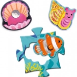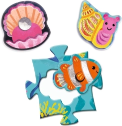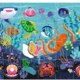 Cauți un joc creativ care să distreze copiii și, în același timp, să le dezvolte abilitățile? Puzzle-ul Djeco Tactilo Mare oferă o imagine mare cu dimensiunea de aproximativ 70 × 50 cm și, în plus, 8 piese separate în formă de pești, crabi și alte animale marine, care se plasează în locurile potrivite. Copiii își exersează într-un mod ludic recunoașterea formelor și concentrarea.