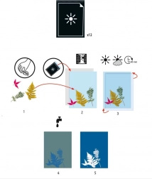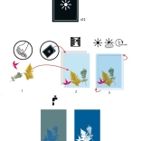 Cu setul de hârtii fotosensibile Djeco transformi razele soarelui într-o experiență creativă. Așază pe hârtie materiale naturale, șabloane sau obiecte mici, lasă soarele să acționeze, iar după clătirea în apă pe fundalul albastru apar delicate umbre și siluete. Proces simplu, rezultate uimitoare.
