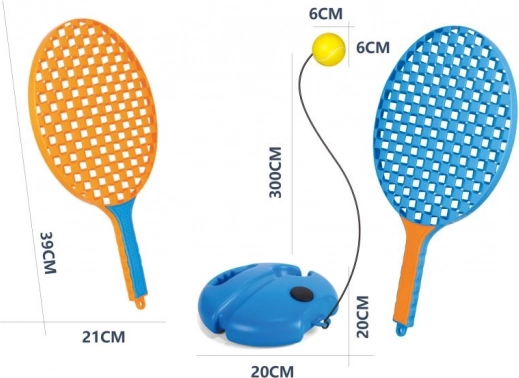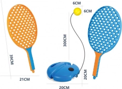 Setul include 2 palete ușoare, astfel încât poți juca și în doi. Antrenorul este ideal pentru copii de la 3 ani, dar îi va bucura și pe adulți pentru o joacă relaxantă în grădină, pe teren sau în vacanță.