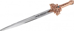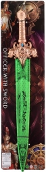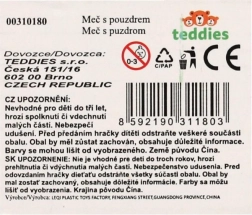 Sabia este plasată într-o teacă decorativă, care accentuează impresia generală și adaugă la autenticitatea jucăriei.