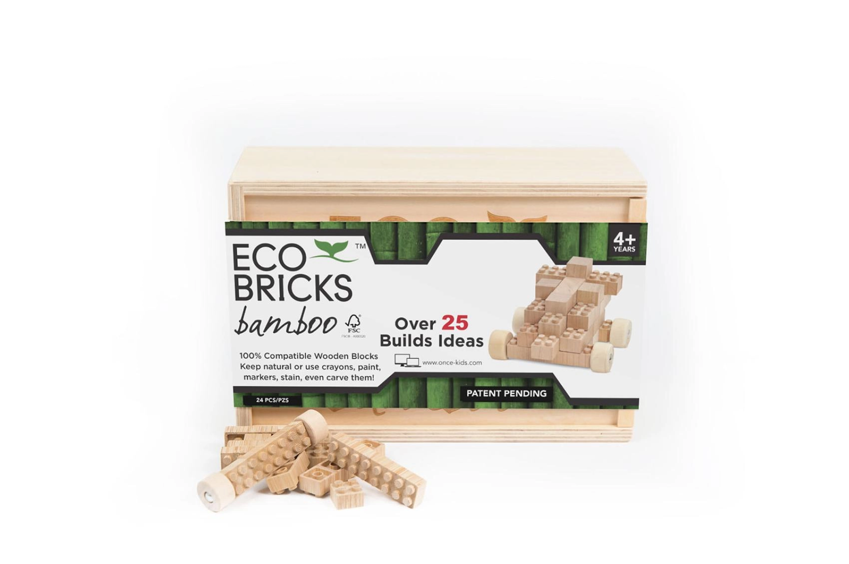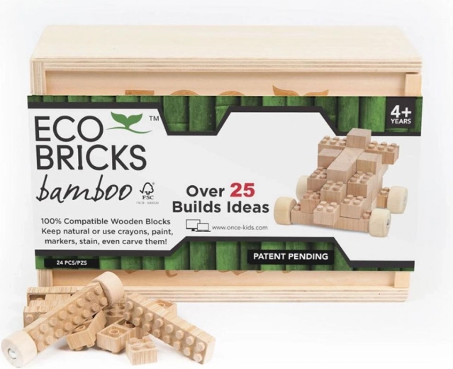 Mic, dar plin de posibilități! Acest set de construcție din lemn conține 24 de piese colorate de forme diferite, cu care copiii pot construi orice își imaginează.