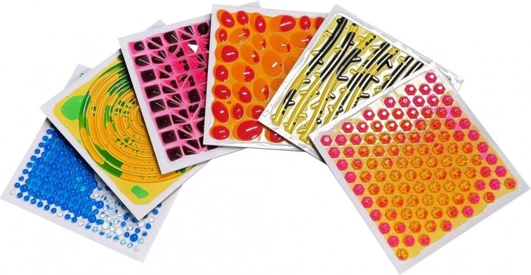 Setul conține șase perne lichide pătrate cu dimensiuni de 30x30 cm. Aceste perne sunt umplute cu un amestec netoxic de apă și ulei care creează efecte vizuale fascinante datorită combinației de culori strălucitoare. Copiii se pot bucura de joacă pe perne și dezvoltă abilități motorii și percepție senzorială.