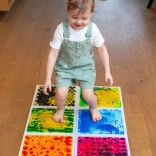 Set de șase perne lichide pătrate cu dimensiuni de 30x30 cm umplute cu un amestec netoxic de apă și ulei în culori strălucitoare. Ideal pentru copii de la 3 ani cu sarcină până la 120 kg.