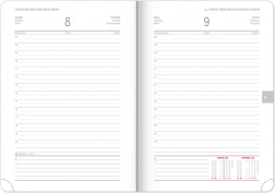 Agenda zilnică Ajax 2026 în culoarea elegantă albastră este ideală pentru planificarea zilnică. Suprafața sa structurată și colțurile rotunjite asigură confort la fiecare utilizare. Echipată cu un calendar în mai multe limbi, oferă o combinație perfectă de vizibilitate și funcționalitate.