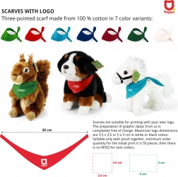 Oferiți jucăriilor de pluș un stil personal cu eleganta eșarfă bej. Datorită opțiunii de imprimare gratuită a logo-ului, este ideală pentru promoții, pachete cadou și merchandising corporativ. Eșarfa este destinată jucăriilor de pluș de până la 30 cm și completează perfect aspectul acestora.