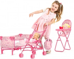 Setul pentru păpuși Trixy 3 în 1 de la Chipolino oferă o soluție completă pentru micile îngrijitoare. Setul include cărucior golf, scaun de masă, pătuț, geantă pentru scutece și geantă de transport. Toate componentele sunt proiectate să fie ușoare și pliabile pentru transport ușor și depozitare: