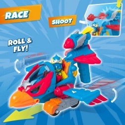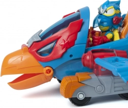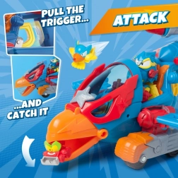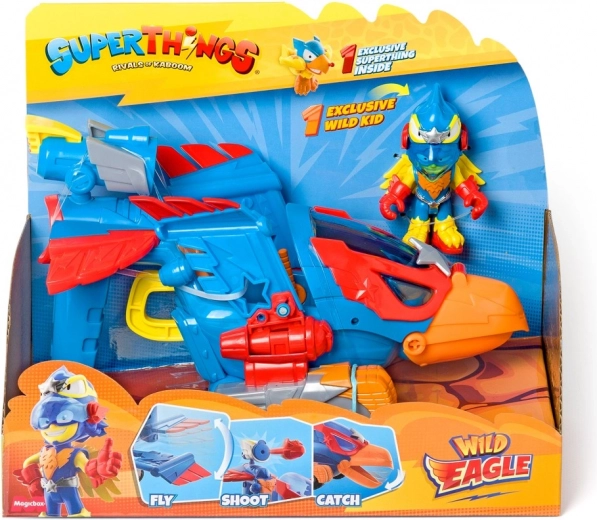 Scufundă-te în lumea aventurilor cu Kidul și SuperThingul exclusiv, care pot zbura în carlinga Jetului Vulturul Sălbatic. Aripile mobile adaugă realism, în timp ce rotițele de tragere promit doborârea răufăcătorilor sau capturarea lor în cioc.
