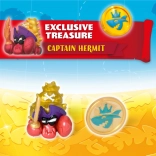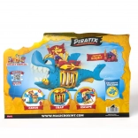 Bucurați-vă de detalii elaborate ale rechinului albastru-auriu cu tron și de căpitanul pirat, pregătit pentru orice aventură.