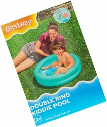 Această piscină rotundă cu două inele gonflabile de aceeași dimensiune și supape de siguranță asigură stabilitate și confort în timpul jocului. Fundul colorat cu imprimeu dă piscinei farmec și stimulează imaginația copiilor.