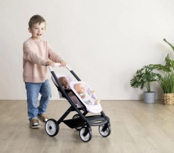 Cărucior sport pentru păpuși gemene de la marca Smoby într-un design Quinny minunat. Acest cărucior modern dispune de