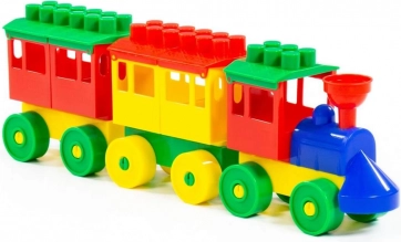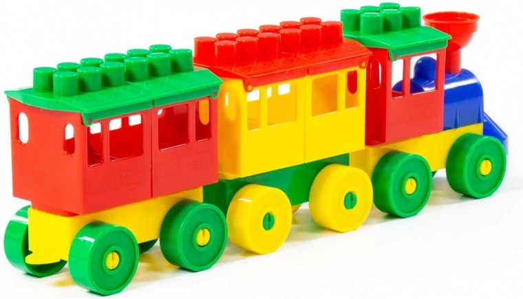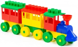 Set trenuleț din plastic colorat este ideal pentru copiii mici de la 3 ani în sus. Setul conține o locomotivă și două vagoane, permițându-le copiilor să dezvolte creativitatea și abilitățile motorii fine.