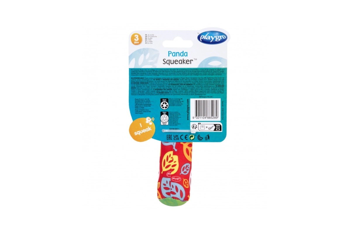 Squeaky Panda de la Playgro este partenerul ideal pentru copilul dumneavoastră. Designul ergonomic și materialele diverse asigură distracție stimulatoare de la vârsta de 3 luni.