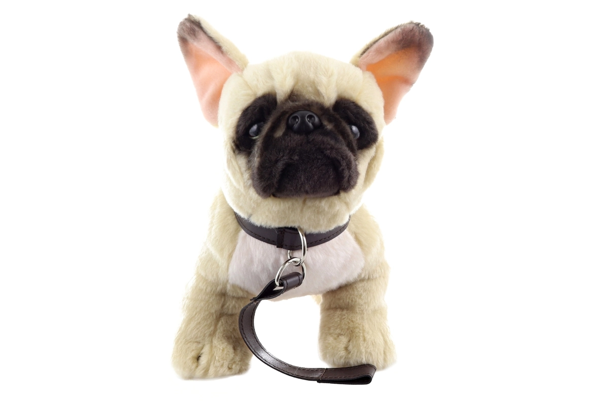 Bulldog Francez de Pluș Eco-friendly cu aspect realist este un însoțitor ideal pentru copiii de toate vârstele. Acest pluș adorabil vine cu o lesă practică care încurajează jocul și interacțiunea.