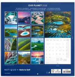 Bucurați-vă de douăsprezece fotografii minunate din diferite colțuri ale lumii cu calendarul cu note Planeta Noastră 2026. Oferă calendar în opt limbi, fazele lunare, sărbători importante și spațiu pentru note.