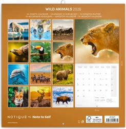 Descoperiți farmecul sălbăticiei cu calendarul nostru de notițe pentru anul 2026, care conține douăsprezece fotografii fascinante ale animalelor sălbatice. Calendarul este ideal pentru planificare, datorită calendarului clar și a spațiului pentru notițe.
