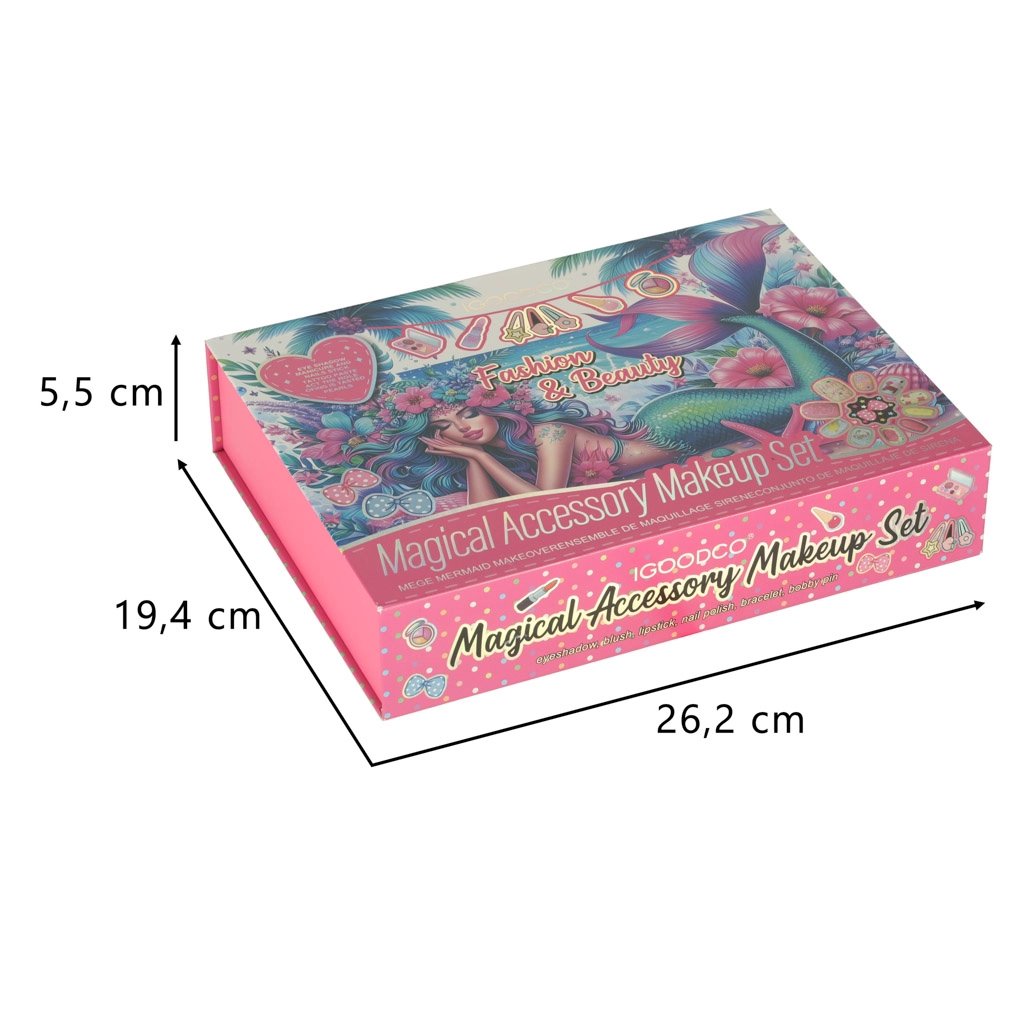 Toate produsele cosmetice sunt netoxice și oferă micilor artiste posibilitatea de a-și crea propriile stilizări. Setul include tot ce este necesar pentru machiaj și îngrijirea unghiilor, inclusiv farduri de culori diferite, rujuri și lacuri de unghii. Toate produsele pot fi spălate în siguranță și ușor cu apă.