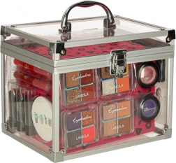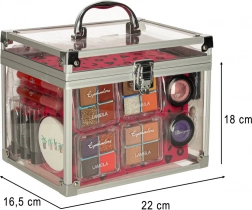 Această uimitoare geantă cu cosmetice XXL conține tot ce un copil are nevoie pentru a crea propriul salon de frumusețe acasă. În interior veți găsi rujuri, farduri de pleoape, glossuri pentru buze, farduri de obraz și chiar un set pentru stilizarea unghiilor. Totul este bine organizat într-o geantă transparentă practică, cu un mâner confortabil.