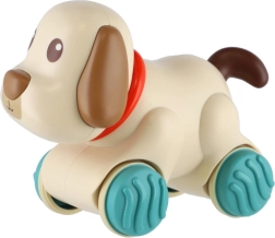 Cățeluș din plastic drăguț, care, după ce este tras înapoi, pornește singur înainte. Datorită mecanismului de tracțiune inversă, jucăria este ușoară și distractivă pentru copii de toate vârstele.