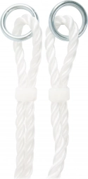 Frânghiile groase din nylon, terminate cu inele metalice, permit o agățare ușoară și o fixare de încredere.