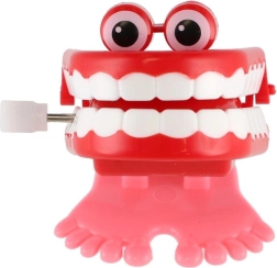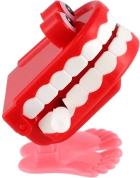 Dinți săltăreți cu mecanism de înfășurare clasic oferă distracție nesfârșită pentru copii și adulți. După înfășurare, acești dinți amuzanți clămpănesc și sar, fiind ideali pentru petreceri și ca un cadou distractiv.