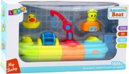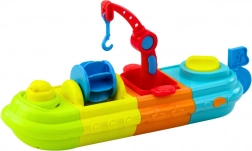 Barca este compusă din patru module colorate, care formează un ansamblu mare. Pe punte sunt figurine amuzante de pasageri – rățușca și țestoasa, și multe elemente mobile, cum ar fi macara cu cârlig, moară de apă și tun de apă. Rățușca poate stropi apă, ceea ce va face orice copil să râdă. Alte recipiente permit turnarea apei, îmbogățind jocul și sprijinind dezvoltarea senzorială.