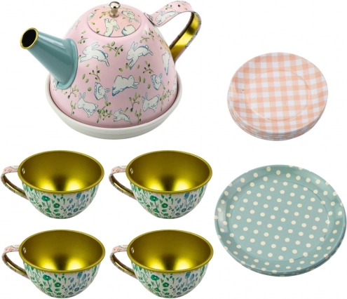 Setul de ceai din metal realizat realist conține cești, farfurii, farfurioare, o tavă și un ceainic. Copilul poate organiza singur ceaiul pentru invitații săi, învățând astfel bazele etichetei, cooperării și atenția la detalii. Jocul cu acest set încurajează creativitatea, îndemânarea manuală și întărește abilitățile interpersonale.