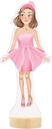 - Păpușă, 30 de piese magnetice (îmbrăcăminte, încălțăminte, accesorii), suport de lemn