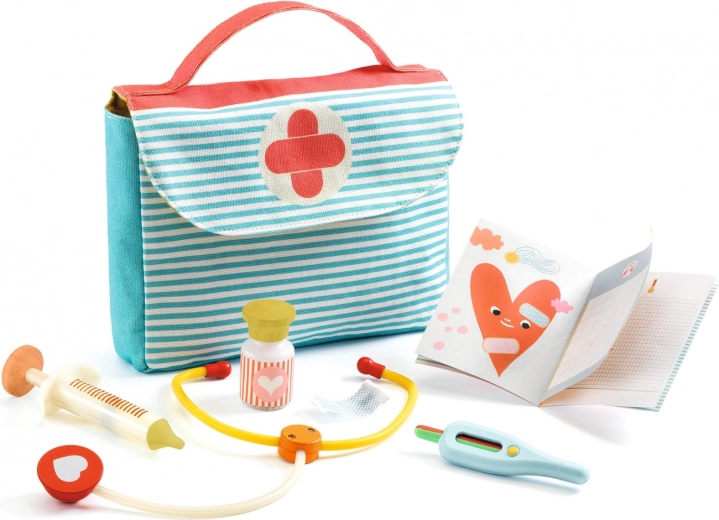 Geanta doctoricească DJECO este un cadou ideal pentru micii pasionați de medicină. Conține tot ce este necesar pentru jocul de-a doctorul: un termometru care își schimbă culoarea, un stetoscop, o seringă, un flacon de medicamente, un bandaj și o fișă medicală.