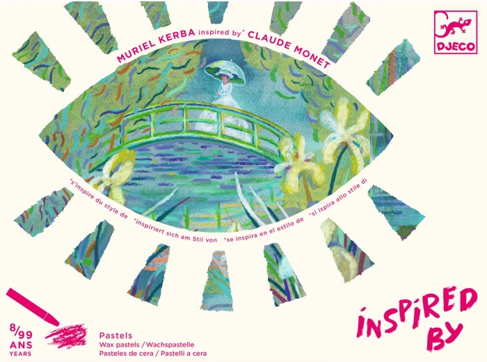 Creați un triptic unic inspirat de Monet cu acest set de artă de la DJECO, care include 3 imagini de completat și un set de 12 pasteluri colorate. Ideal pentru artiști de toate vârstele.