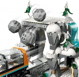 - Setul include 22 de piese de șine de tren, un tunel montan cu pietre căzătoare și o bază minieră detaliată și o peșteră.