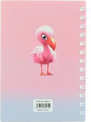 Caiet cu spiră și un motiv atrăgător cu flamingo, ideal pentru utilizarea zilnică. Capacele frontale sunt căptușite și modelate, ceea ce asigură atât durabilitate, cât și un aspect estetic.