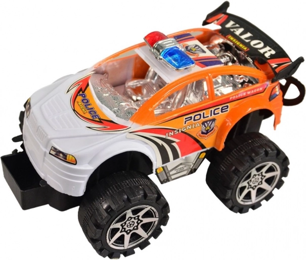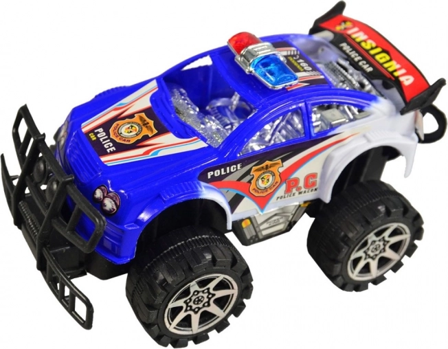 Mașină de teren de poliție, jucărie ideală pentru micii aventurieri. Se remarcă prin materialul său de plastic și roțile mari, care fac față terenurilor accidentate.