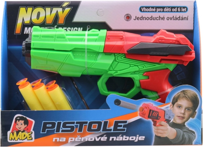 Această pistolă distractivă este ideală pentru micii aventurieri. Este fabricată din plastic de calitate, care garantează durabilitate și siguranță în timpul jocului. Nu necesită baterii - este gata de folosit imediat. Pachetul include 3 culori diferite, astfel încât copilul poate alege favorita sa. În ciuda simplității sale, pistolul oferă dimensiuni care asigură o prindere confortabilă: 15 cm în înălțime, 21 cm în lățime și 4,5 cm în adâncime.
