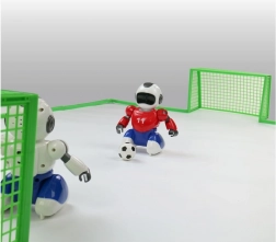 Trăiește emoția unui meci de fotbal cu Fotbal robotizat, unde doi roboți concurează în arta de a controla mingea în poarta adversarului. Fiecare robot este controlat individual printr-o telecomandă, ceea ce garantează control maxim asupra mișcărilor și acțiunilor lor.