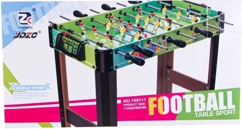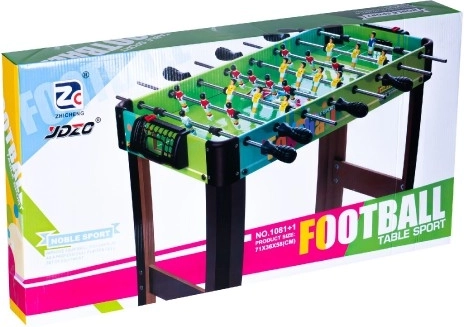 Acest fotbal de masă este o alegere ideală pentru distracție în familie și dueluri între prieteni. Datorită dimensiunilor compacte de 71 × 36 cm îl puteți așeza cu ușurință pe o masă obișnuită, păstrând elementele unui fotbal mare – tije metalice cu rotație de 360°, portari, contor de scor și deplasarea cursivă a jucătorilor.