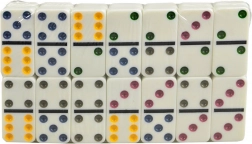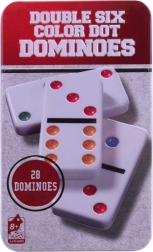 Această jucărie clasică oferă copiilor distracție și ajută la dezvoltarea gândirii logice și a motricității fine. Cutia metalică asigură transportul ușor și protejează domino-ul împotriva deteriorării. Setul conține 28 de piese de domino, care sunt fabricate din plastic de calitate și sunt ușor de curățat.