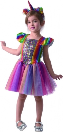 Acest costum uimitor va oferi fiecarui copil o atmosfera magica si va deveni vedeta oricarui carnaval sau petrecere pentru copii. Parte a costumului Unicorn este o bentita decorativa cu corn si rochii frumoase.