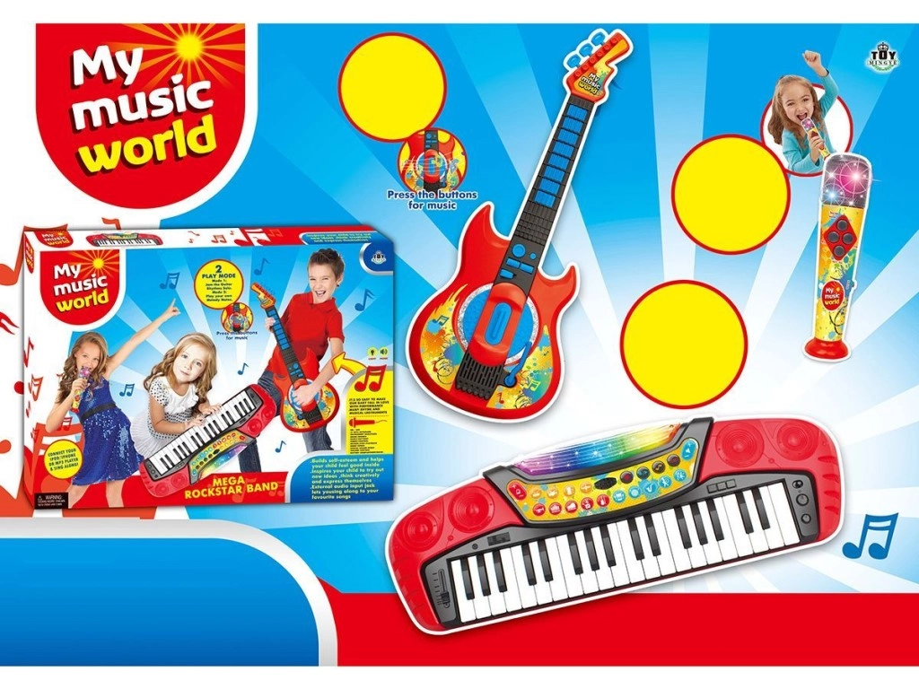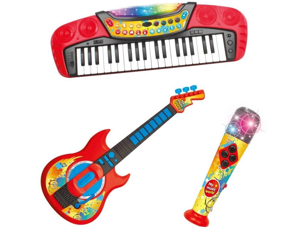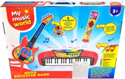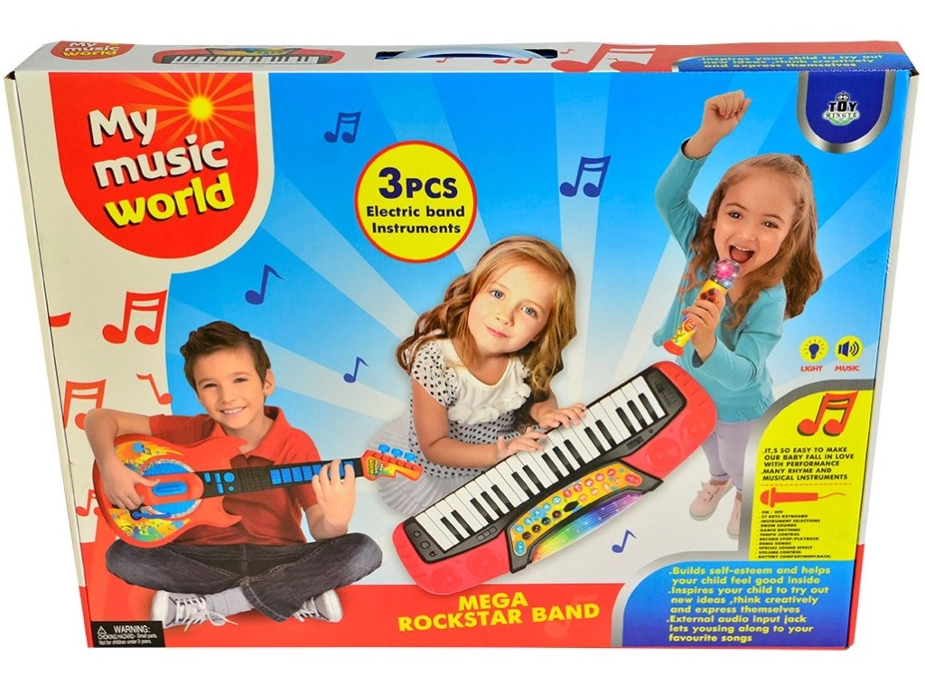 Acest set multifuncțional este alegerea perfectă pentru copiii care iubesc muzica și doresc să devină mici vedete rock. Setul conține: