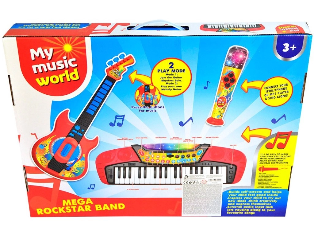 Set interactiv și super distractiv 3 în 1 conține un pian electronic cu 37 de clape, chitară și microfon. Ideal pentru mici muzicieni!