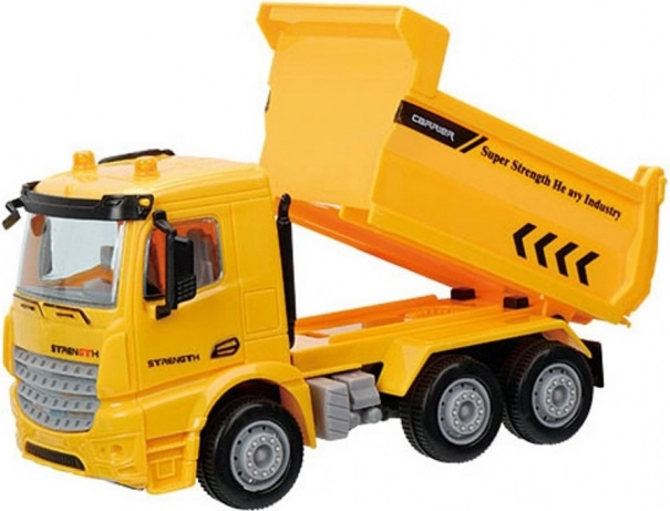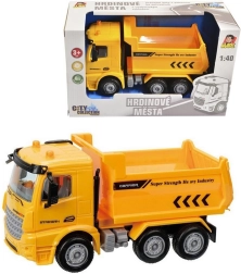 Mașină de construcție pe inerție cu lungimea de 16 cm pentru toți micii fani ai construcțiilor. Alegerea ideală pentru băieți de la 3 ani, cu o construcție robustă din plastic și o manevrare ușoară datorită inerției.