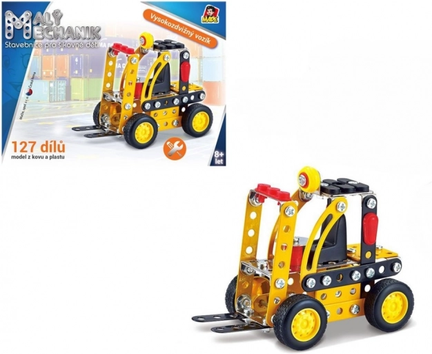 Construcția Mic Mecanicul oferă copiilor oportunitatea de a crea și dezvolta abilități tehnice într-un mediu sigur. Acest set conține 127 de piese care combină componente metalice și din plastic, cu care copiii își pot crea propriul stivuitor.