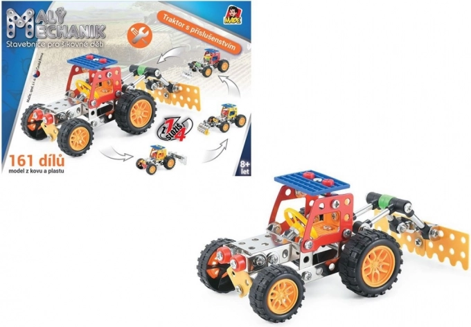 Set de construcție Mic mecanic oferă o intrare excelentă în lumea tehnicii și dezvoltă abilități motorii și creative la copii. Tractorul asamblat manual cu accesorii oferă multă distracție.